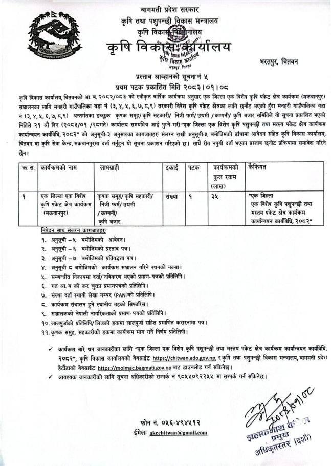 एक जिल्ला एक विशेष कृषि पकेट क्षेत्र सूचना
