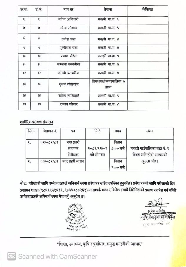 छोटो सूची प्रकाशन तथा शारीरिक परीक्षण संचालन सम्बन्धी सूचना ।