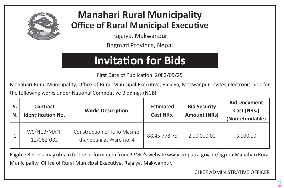 बोलपत्र आह्वान सम्बन्धमी सूचना ।