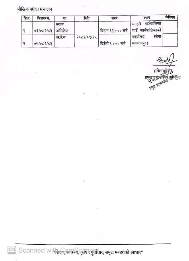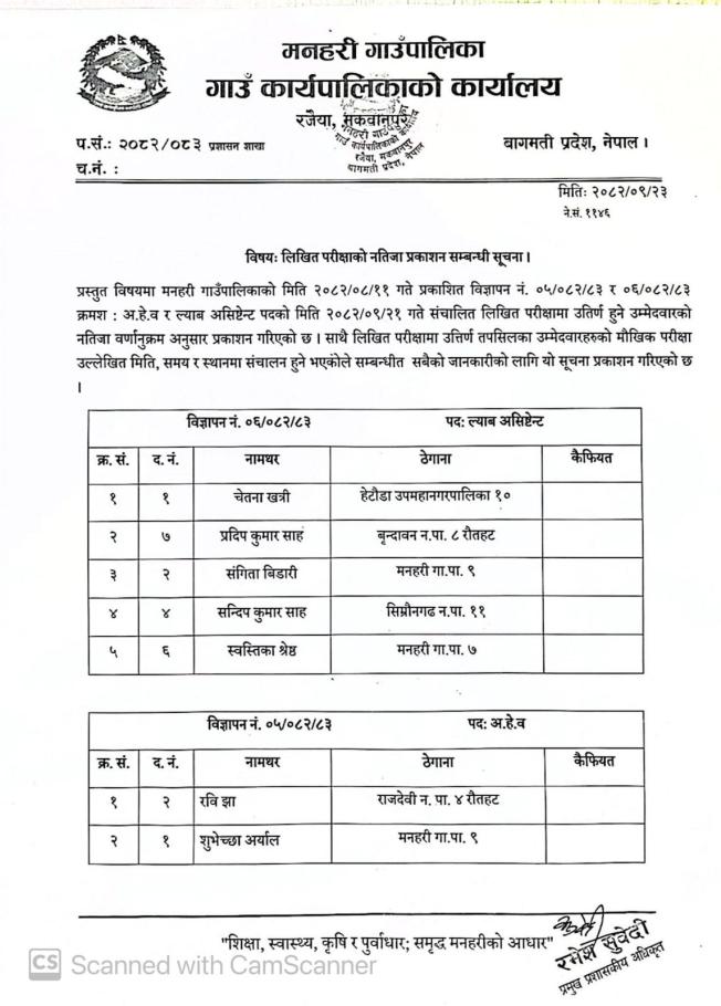 लिखित परीक्षाको नतिजा प्रकाशन सम्बन्धी सूचना ।