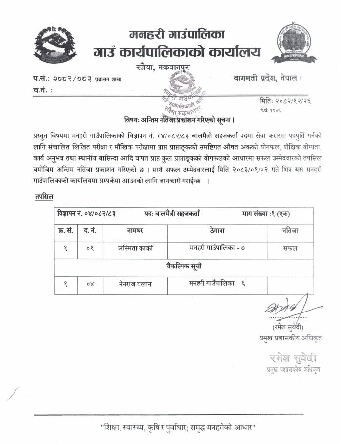 अन्तिम नतिजा प्रकाशन गरिएको सूचना ।
