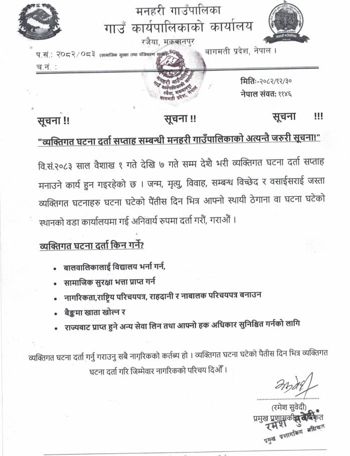 व्यक्तिगत घटना दर्ता सप्ताह २०८२