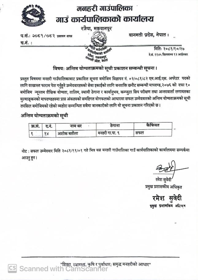 अन्तिम योग्यताक्रमको सूची प्रकाशन सम्बन्धी सूचना ।