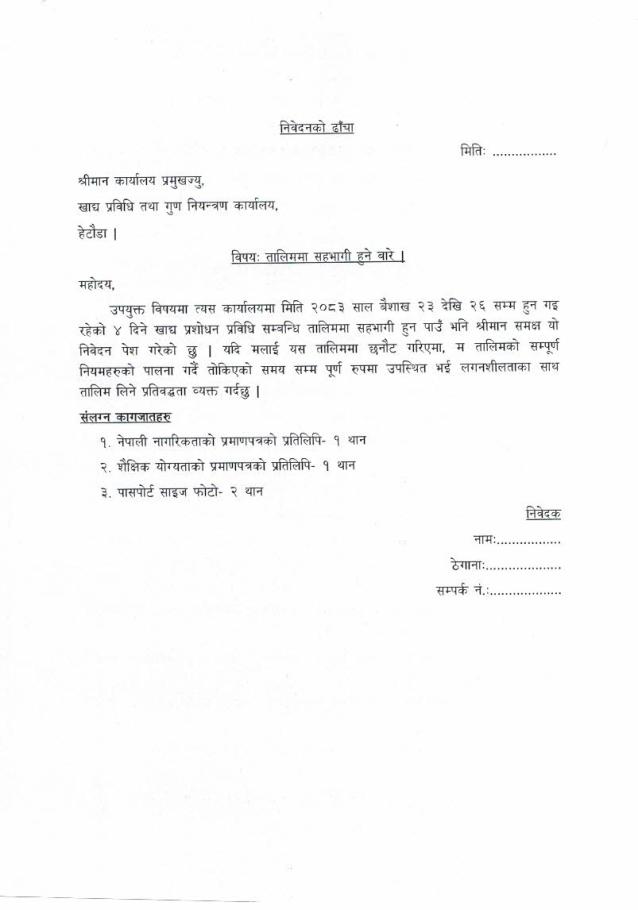खाद्य प्रशोधन प्रविधि तालिम सम्बन्धी सूचना