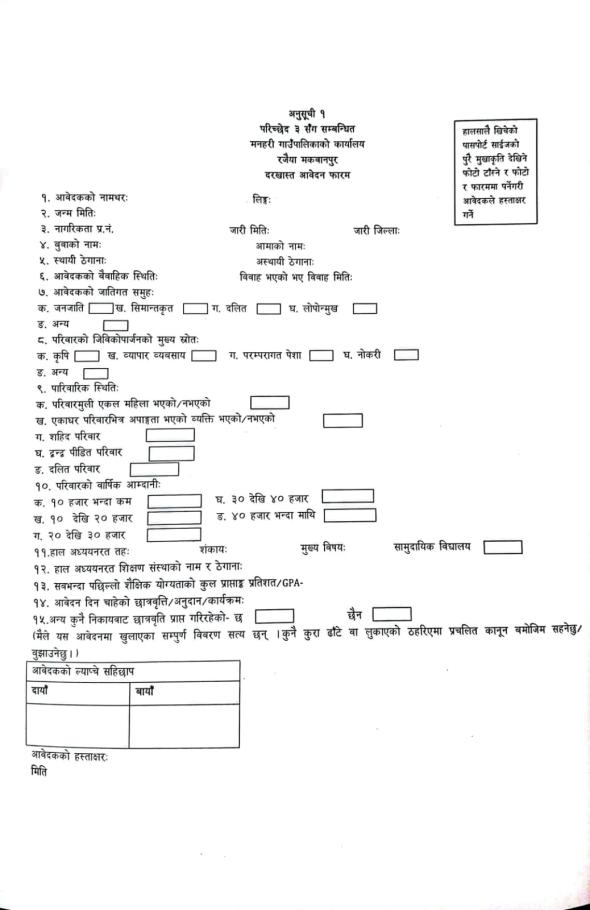 छात्रवृत्तिको लागि दरखास्त आह्वान सम्बन्धी सूचना ।