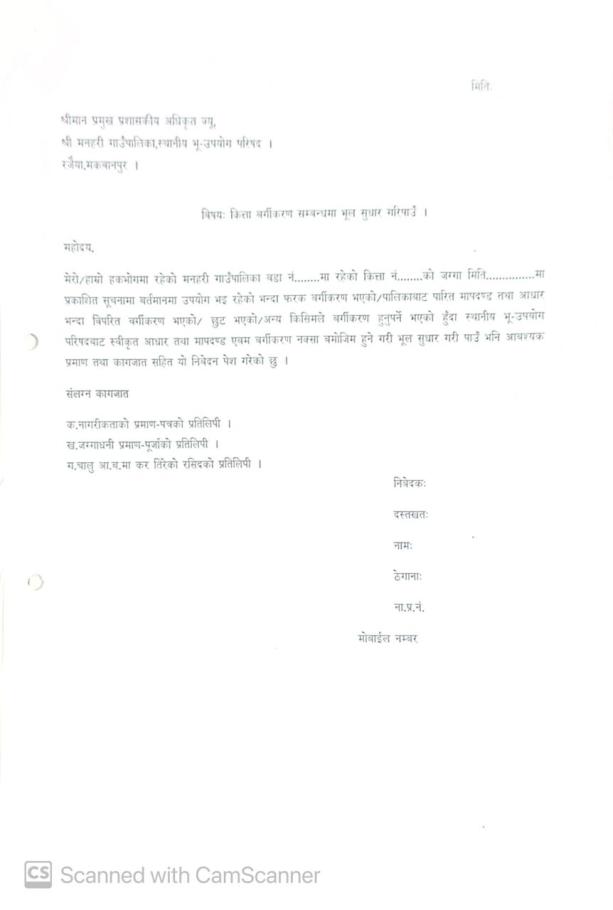 भू-उपयोग बर्गीकरण तथा कित्तागत विवरण सम्बन्धी सार्वजनिक सूचना ।