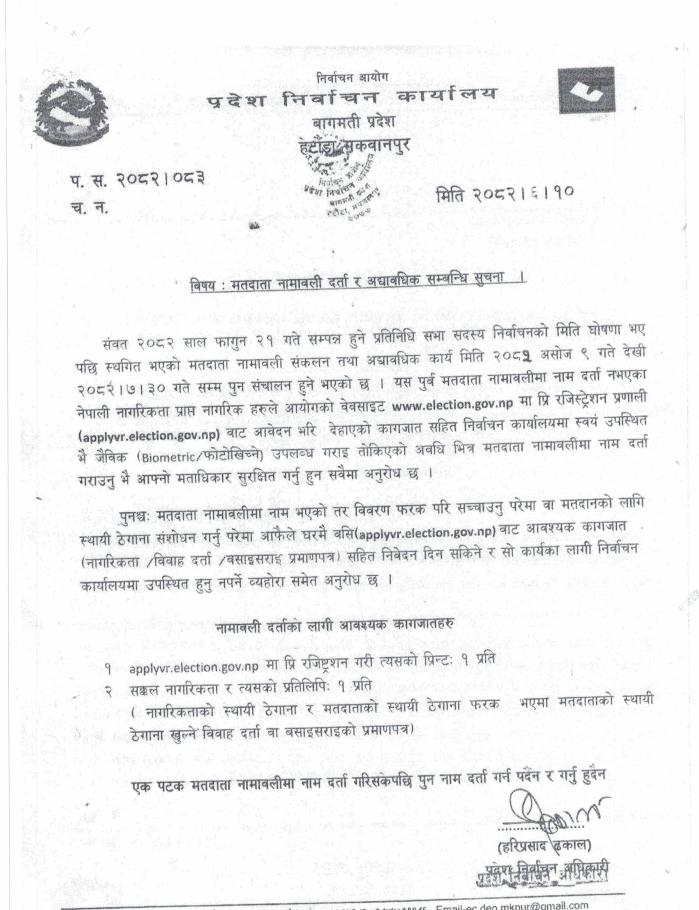 मतदाता नामावली दर्ता र अद्यावधिक सम्बन्धी सूचना ।