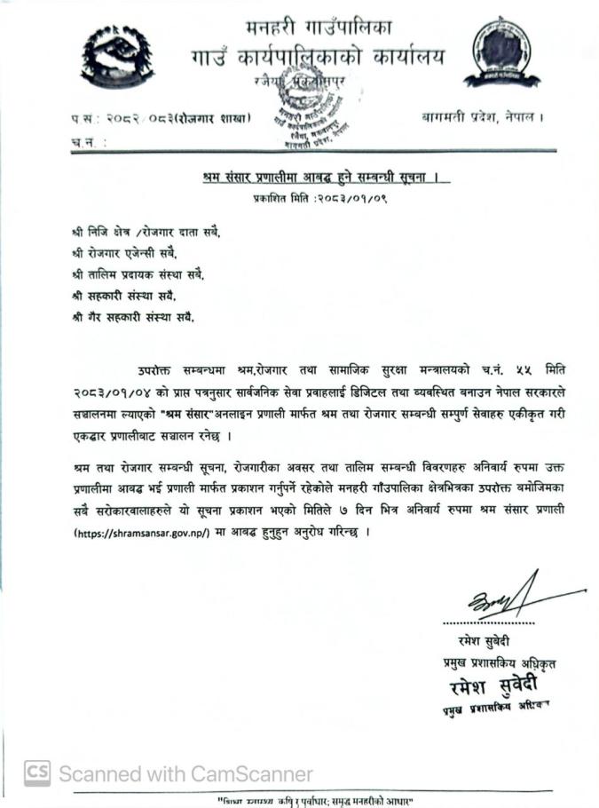 श्रम संसार प्रणालीमा आबद्ध हुने सम्बन्धी सूचना